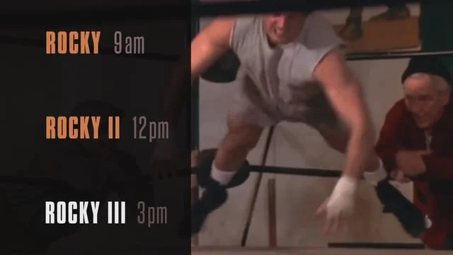 Series of motion graphics for a simulated rebrand for Spike. This series includes one 3-second Bar Rescue bumper, one 10-second Rocky Marathon bumper, and one 20-second Up Next. For the simulated motion graphics rebrand, I took influence from Spike's high energy and largely masculine television content.